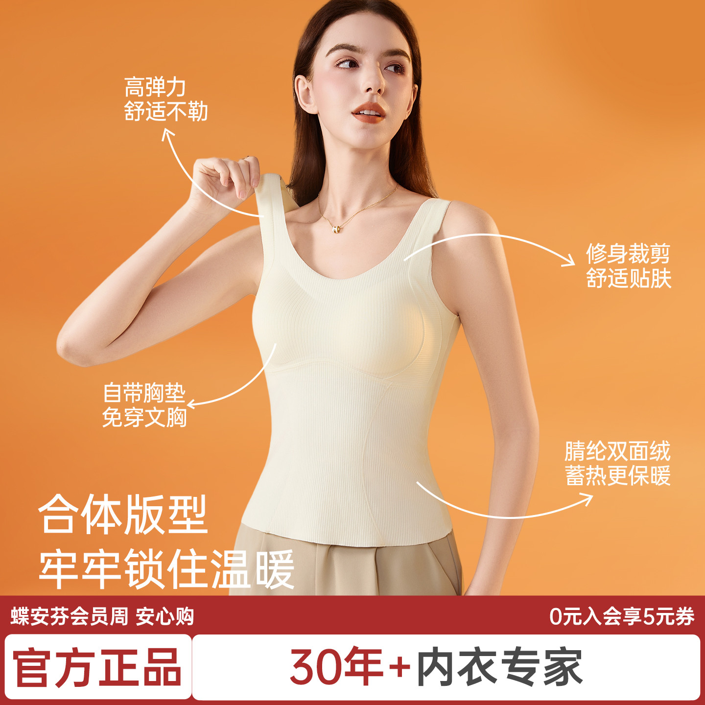 蝶安芬保暖背心女带胸垫无痕羊毛蚕丝打底衫——秋冬暖意新选择