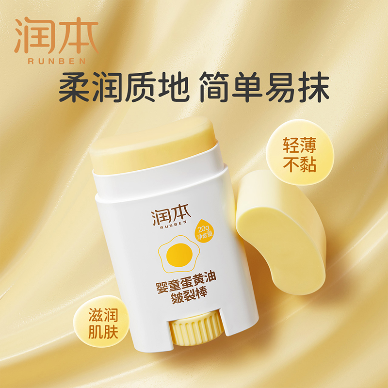 润本婴儿滋润棒的核心成分是天然蛋黄油,这种从新鲜蛋黄中提取的油脂富含卵磷脂、维生素及多种矿物质,具有卓越的保湿和修复能力。它不含酒精、香精及刺激性防腐剂,温和到连新生儿娇嫩的肌肤都能安心使用。蛋黄油自古便是中医外用的“肌肤修复剂”,能有效缓解秋冬干燥引起的皴裂、脱皮现象,为宝宝肌肤筑起一层天然保护膜。