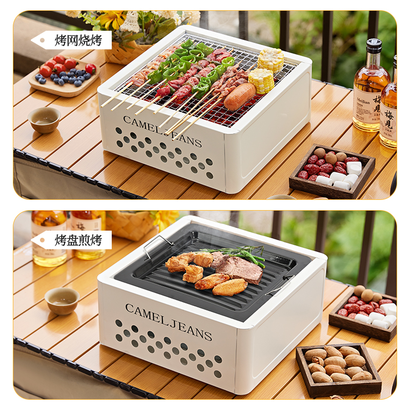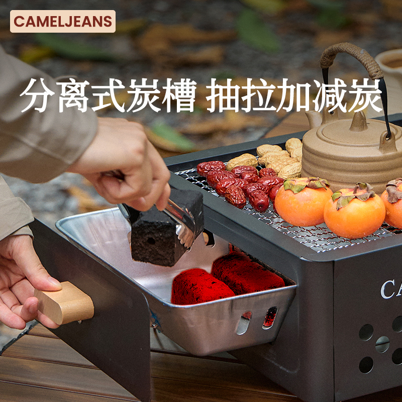 自由烹饪:上层烤肉、下层煮茶,抽拉炭仓随时补炭,美食不断档。