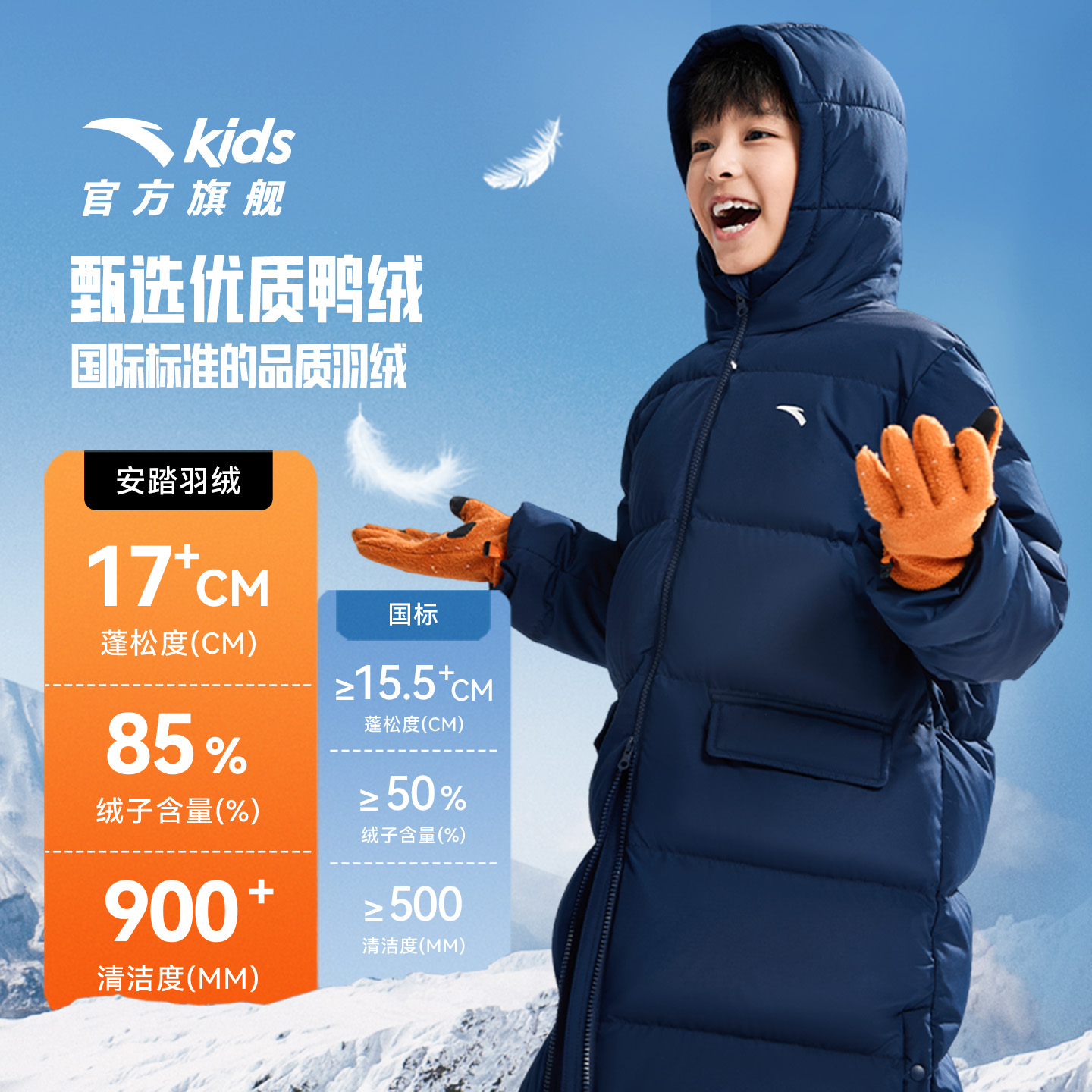 安踏儿童蓬蓬羽中长款羽绒服 | 2025冬新款四防科技,保暖与轻盈的完美平衡