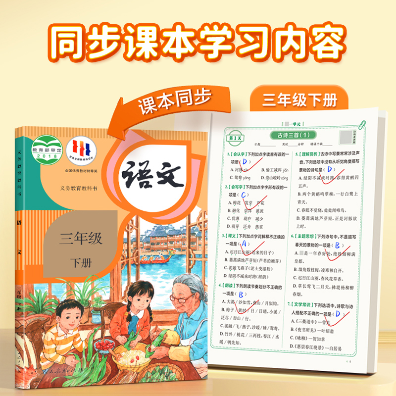 本套练习册由资深教育专家团队精心编写,内容设计紧贴人教版小学语文教材课标,覆盖3-6年级古诗、字词、语法等核心考点。纸张采用环保加厚材质,印刷清晰,不易破损,方便孩子反复翻阅、标记重点。每页题目独立排版,答案与解析分册装订,便于家长辅导或孩子自主核对。