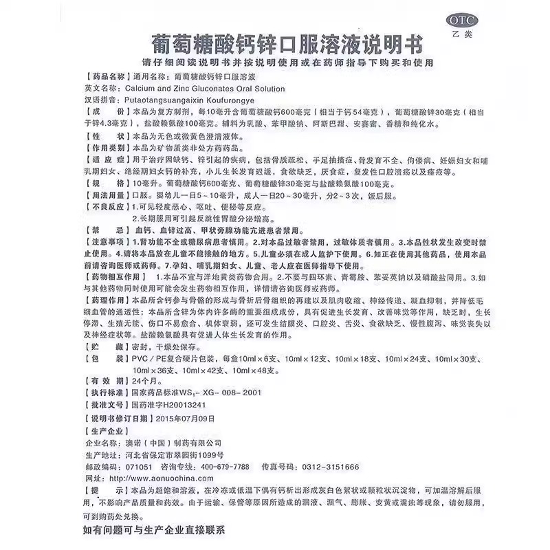 产品详情:999澳诺葡萄糖酸钙锌口服溶液(10ml×24支)