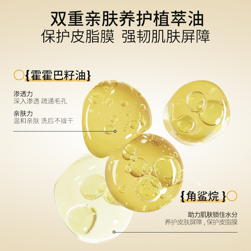 ✅ 卸妆+养肤二合一:添加澳洲坚果油、维生素E等天然植物成分,卸妆同时滋养肌肤,洗后不紧绷,长期使用皮肤更透亮。