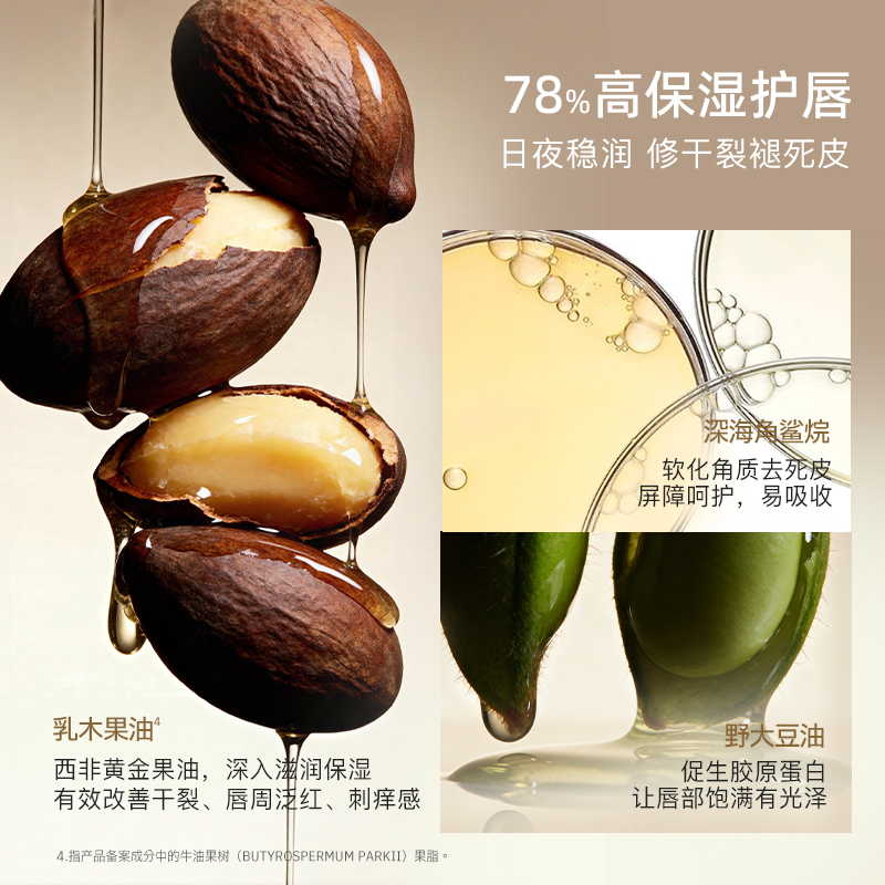 | 保湿时效 | 8小时持久锁水 | 2-3小时需补涂 | 过夜修护,白天需搭配润唇膏 |