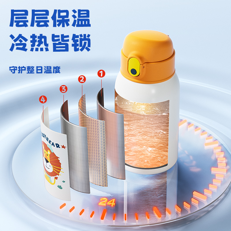 亲子出行:轻量化杯身(仅320g)搭配可调节背带,适合郊游、野餐时随身携带,保温时效长达6小时,冬季也能喝到温水。