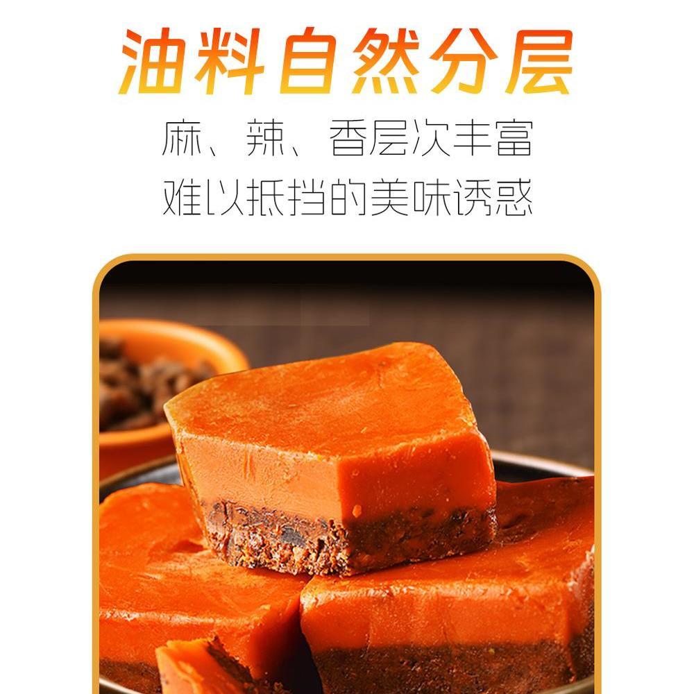 • 原料:精选非转基因菜籽油、优质牛油(占比≥35%),搭配郫县豆瓣、汉源花椒、贵州辣椒等核心产区香料,0添加防腐剂、人工色素,老人小孩放心吃。