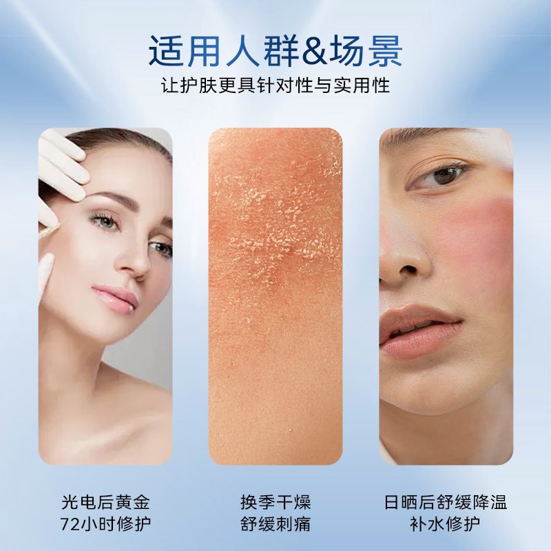 • 换季敏感:春秋干燥期,皮肤泛红、起皮时,连续敷3天稳定状态。