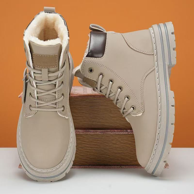 - 高帮款式包裹脚踝,搭配工装裤或牛仔裤,复古英伦风拉满,通勤、约会、出游全适配。