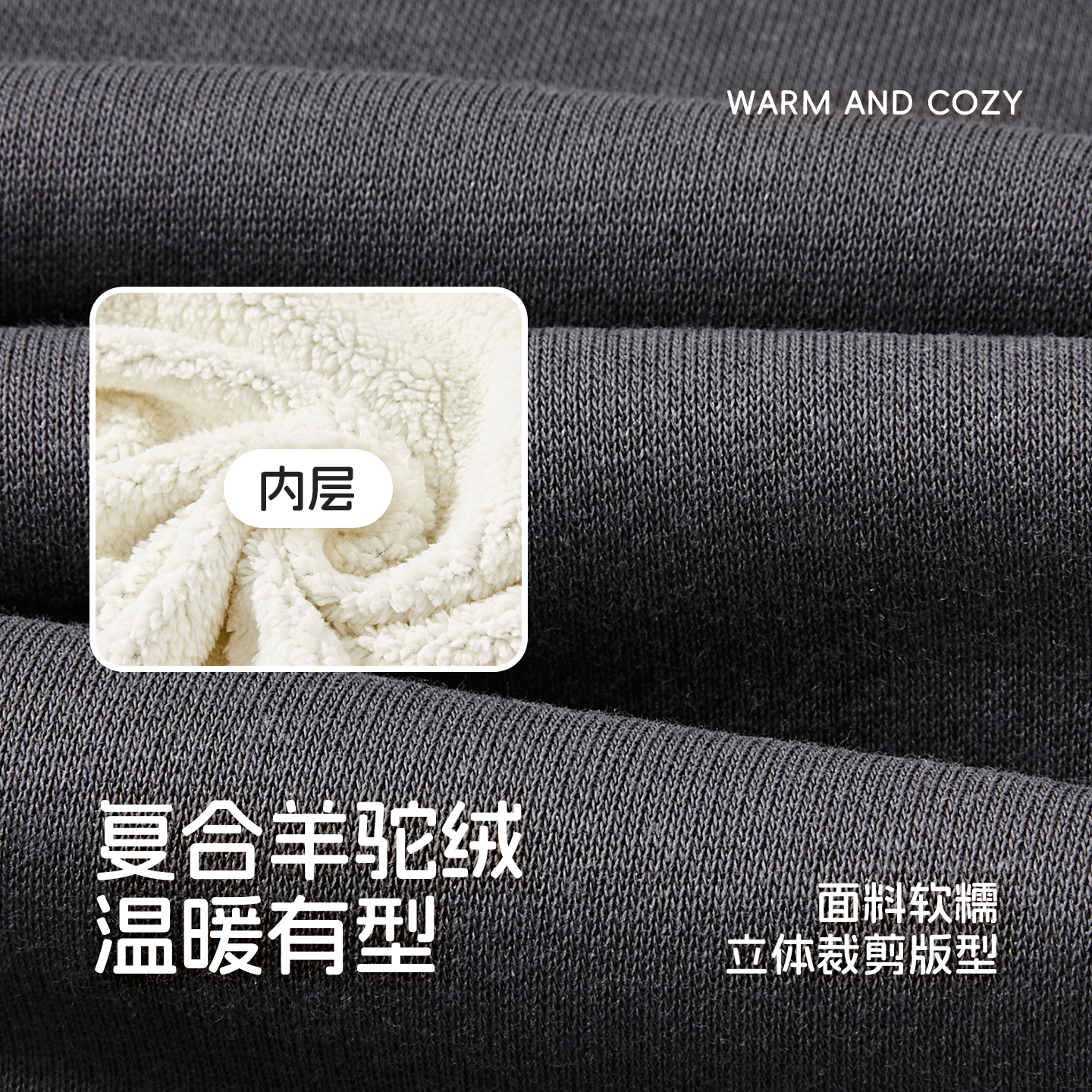 核心面料:外层采用高密度针织棉,抗起球、耐磨耐穿,内层覆盖超细密一体绒(厚度达3mm),触感如云朵般柔软,贴肤不扎痒。
