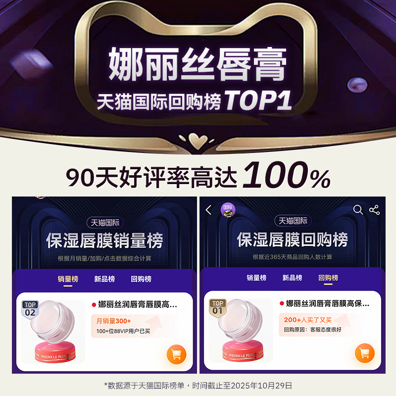 夜间修护:厚敷作为唇膜,淡化唇纹,次日晨起唇部柔软如初。