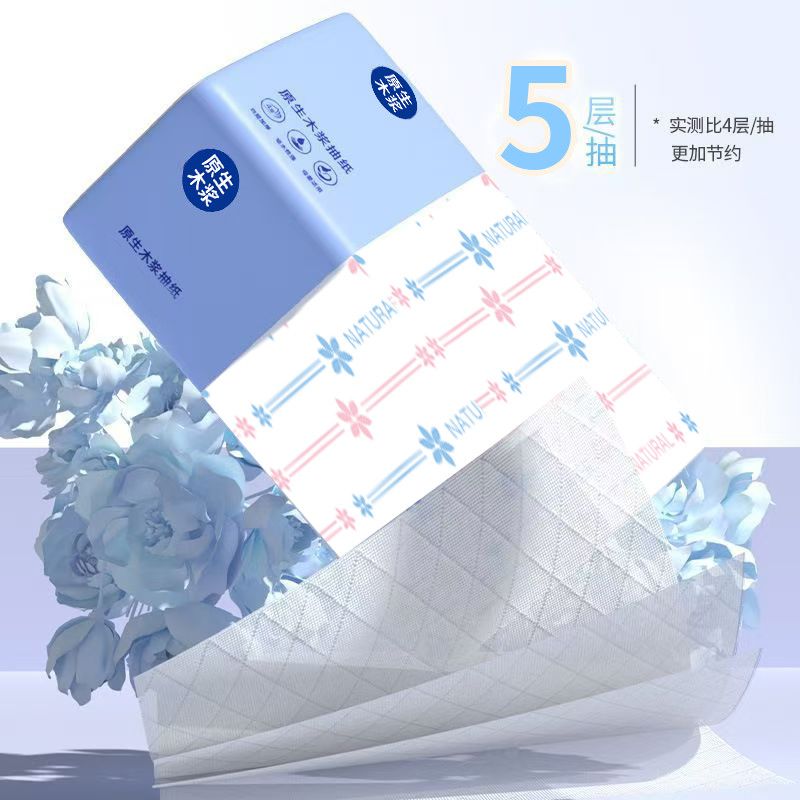✅ 五层加厚设计:原生木浆材质,纸张厚实不易破,湿水不散,擦手、擦脸、擦桌面一抽搞定,告别“一擦就破”的尴尬。