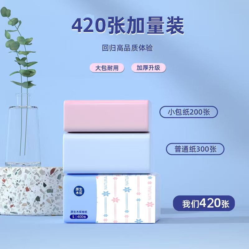 ✅ 超值大容量:420张/包×8包,单包抵普通抽纸2倍量,家庭用不心疼,整箱囤货更划算!