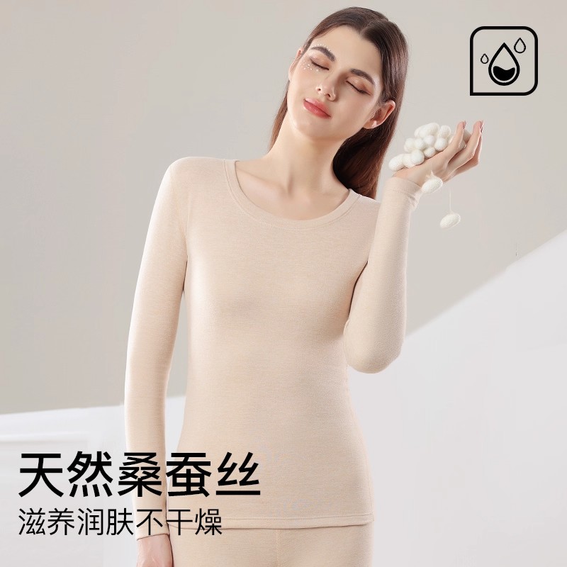 中层羊毛蚕丝混纺:天然动物纤维,吸湿透气不闷汗,贴身穿更亲肤,敏感肌友好。