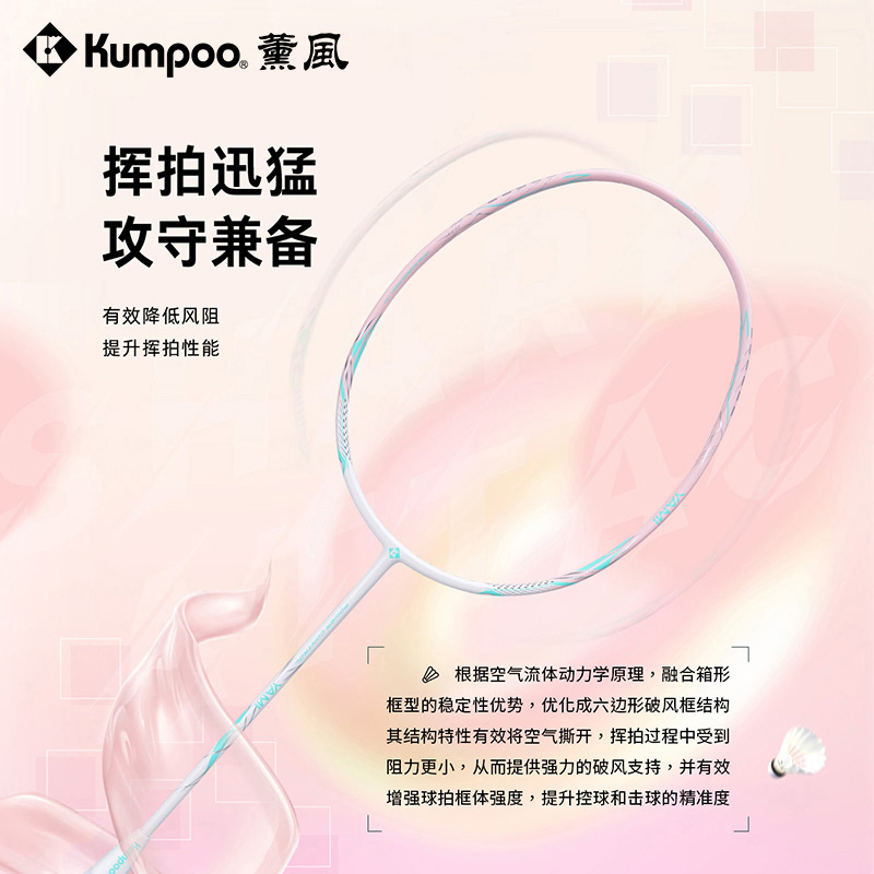 薰风羽毛球拍采用全碳素纤维材质,这种材质以“轻如羽,强如钢”著称,是专业球拍的首选材料。相比传统铝合金拍,碳素纤维拍身重量更轻(仅约80-85克),挥拍时几乎无负担,尤其适合新手或学生群体。同时,碳素纤维的抗冲击性和韧性极佳,即使偶尔撞拍或大力扣杀,也不易变形或断裂,真正做到“耐打不娇气”。
