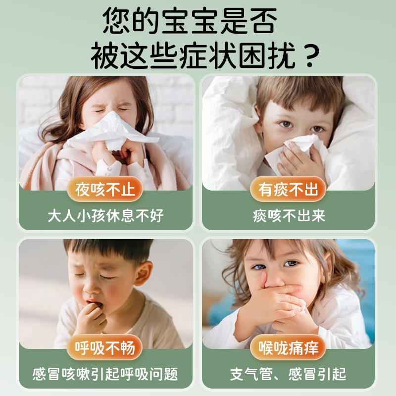清肺化痰:针对婴幼儿感冒干咳,有效清肺化痰,平喘止咳,助力宝宝快速恢复。