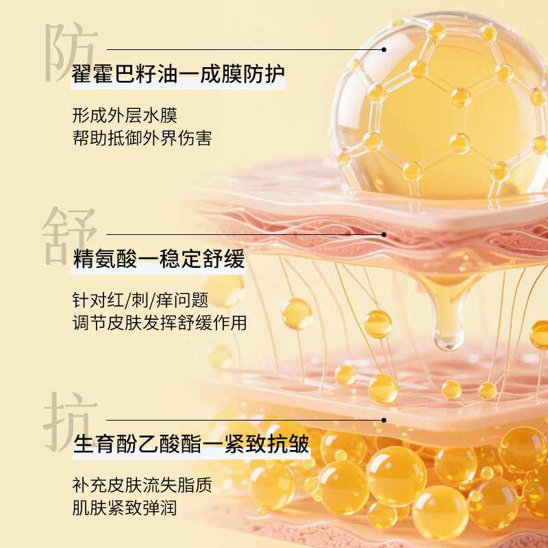 搭配禁忌:避免与含高浓度酸类(如水杨酸)的护肤品同用,可能影响成膜效果。