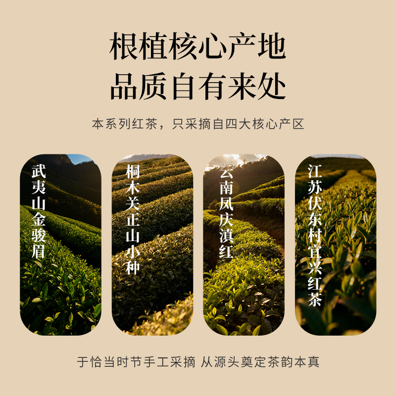 原料 单芽头,嫩度极高 一芽一叶,带松烟香 一芽二叶,浓强鲜爽