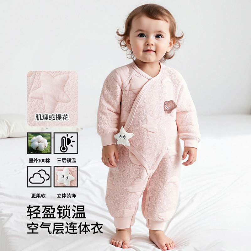 产品详情:纯棉婴儿连体衣秋冬长袖——温暖守护,萌趣出行